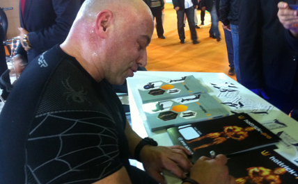 Hattrick Pro 2012 Anfaş Otel Ekipmanları Fuarı'ndaydı! Kilosunda dünya şampiyonu olan Hakan Gümüş de katılımcıların sorularını yanıtlayarak katılımcıları spor yapmaya teşvik etti.