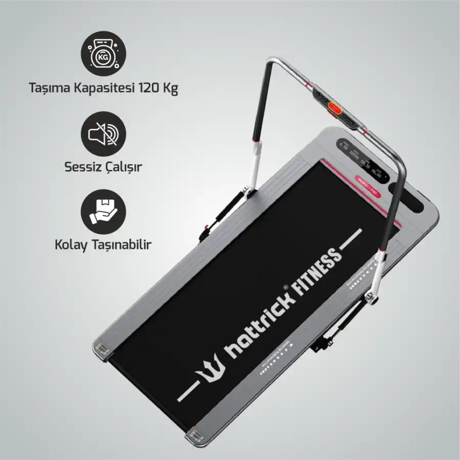 Küpeşte Kapalı: Bir yürüyüş pedine dönüşür ve 6 km/s hız ile çalışma masanızın altında veya TV karşısında aktif kalmanızı sağlar.