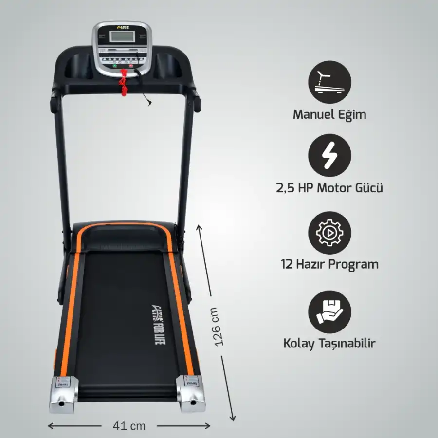 Diğer Özellikler :Katlanabilirliği sayesinde yer kaplamaz. Güvenli kilit sistemi mevcuttur. MP3girişli ve Hoparlör fonksiyon özelliği bulunmaktadır. Ana konsolda su vetelefon bölmesi, Elden nabız ölçme özelliği mevcuttur. Amortisörlü (EmniyetliYavaş Açılma EFS Sistemi). Body fat ile vücut yağı ölçülebilmektedir.